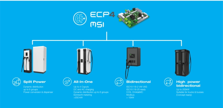 ECP4 is the intelligent control software at the core of our charging systems. Developed in-house and backed by over 15 years of experience in EV charging system development, it enables efficient management, monitoring, and control of charging processes—both in public and private environments. With ECP, features such as user access, load balancing, remote maintenance, and billing are seamlessly integrated. The platform is modular and highly adaptable, making it easy to integrate into existing infrastructures and ready to meet future mobility demands.